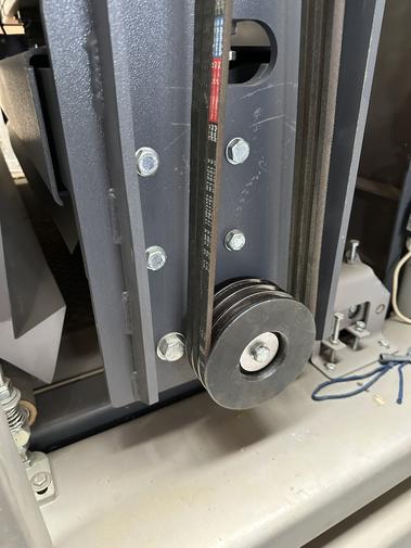 - Opotřebený podávací pás v na obou krajích, nemá vliv na funkčnosti při menších obrobcích