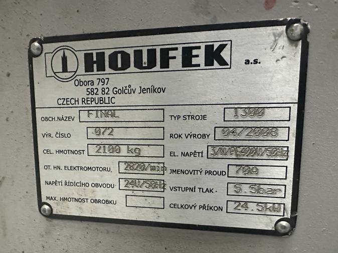 Použitá kartáčovačka HOUFEK FINAL 1300 je vysoce výkonný kartáčovací stroj pro finální úpravu povrchů - jemné broušení, strukturování, hlazení a další dokončovací práce, přičemž jednotlivá úprava povrchu vychází z typu použitého nástroje - kartáče. Nabízí variabilitu pracovních agregátů (nástrojů) a jejich oscilaci pro optimalizaci dosažených výsledků.