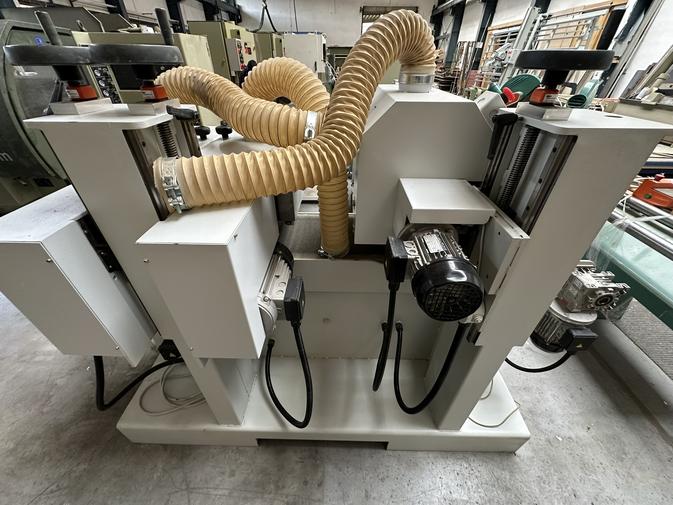 - Vstupní a výstupní odpružené a nastavitelné přítlačné válečky u každé hlavy, k zajištění maximální stability obrobku