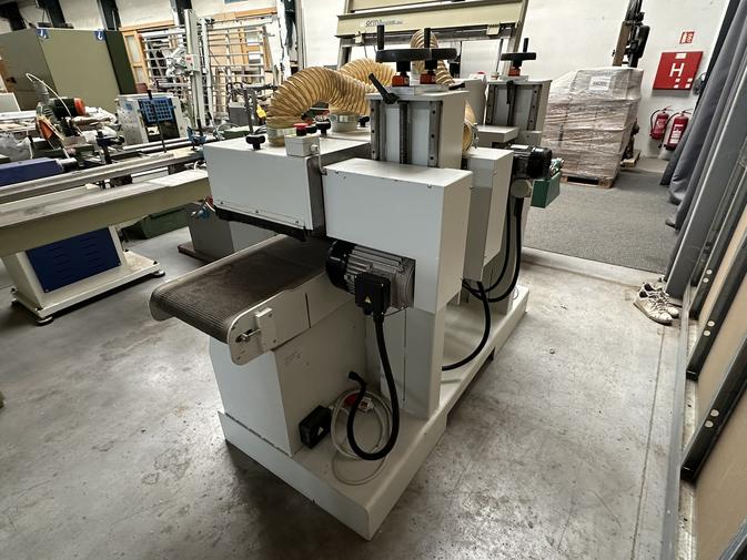- Vstupní a výstupní odpružené a nastavitelné přítlačné válečky u každé hlavy, k zajištění maximální stability obrobku