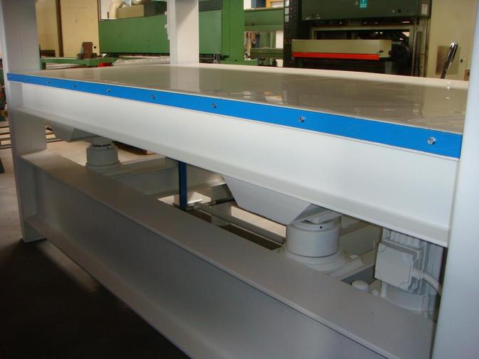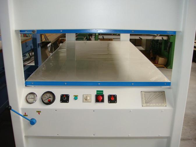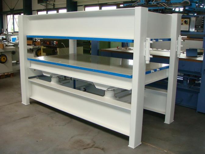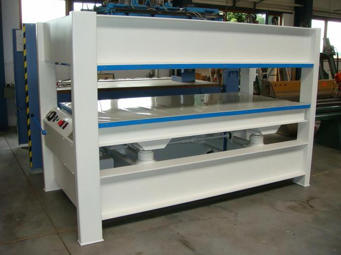 Repasovaný čtyř-pístový hydraulický plošný lis italské výroby. Značkový etážový lis na snadné dýhování dřeva.