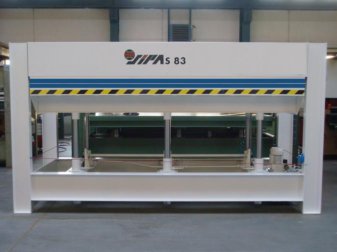 Repasovaný šesti-pístový hydraulický plošný lis italské výroby. Značkový etážový lis na snadné dýhování dřeva se zárukou a servisem.